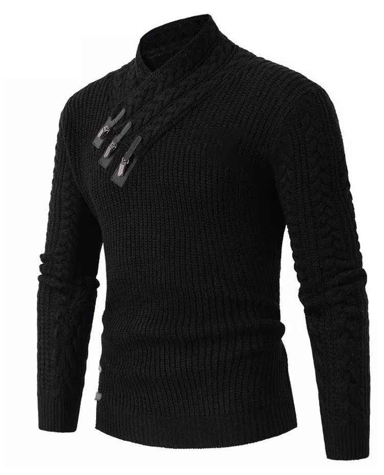 Herren-Kaschmirpullover mit Lederknopf-Schrägkragen